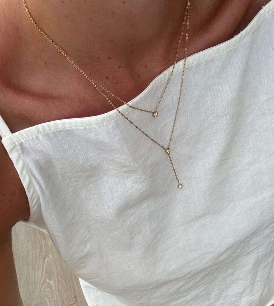 Gargantilla doble de cadena bañada en oro y tres circonitas .